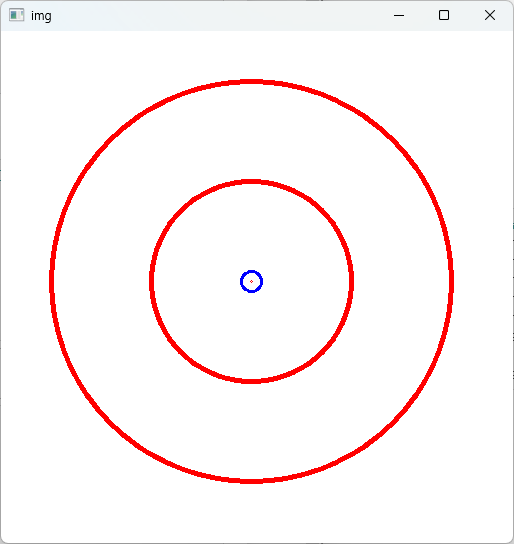 반지름이 200(red), 100(red), 10(blue),1(red)이고 이미지 중심에 같은 원 그려보기
