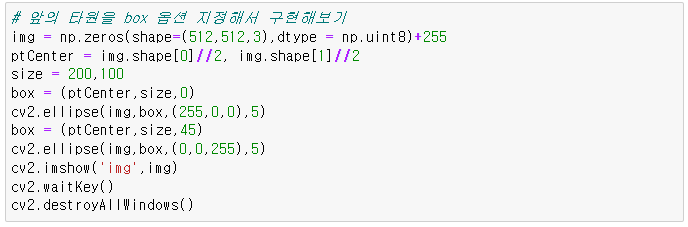 그림의 중심에 임의의 크기 타원 그려보기, 각도 0, 45 변경 등 다양한 시도