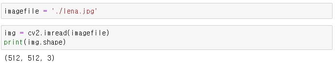 - 영상 입력: cv2.imreaad(filename[,flage]) → retval