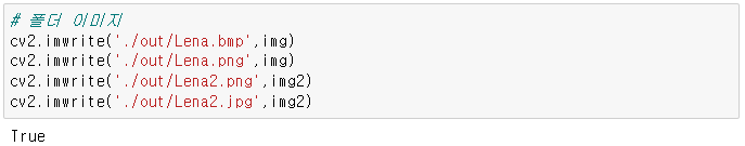 - 영상 파일 출력: cv2.imwrite(filename, img[, params]) → retval