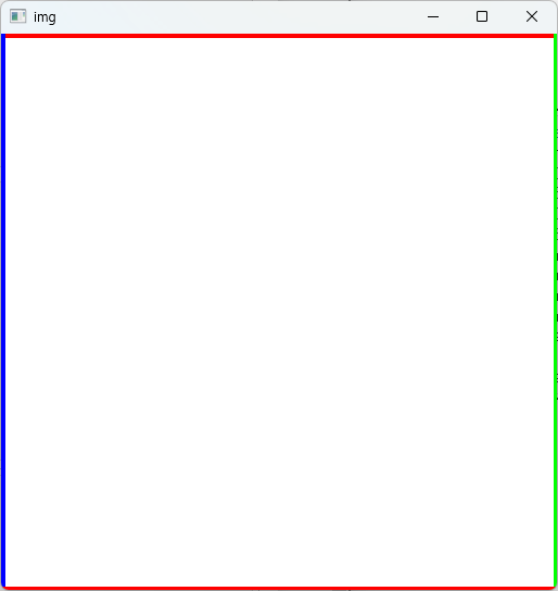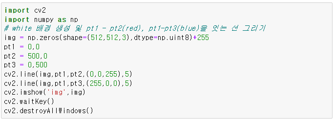 white 배경 생성 및 pt1 - pt2(red), pt1-pt3(blue)을 잇는 선 그리
