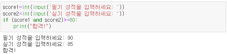 - 조건1 and 조건2: 둘 다 참이어야 전체 결과가 참이 된다.