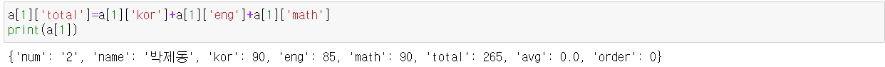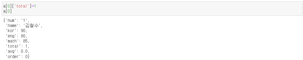 - 1번 학생의 총점을 (0→1)로 변경 후 확인