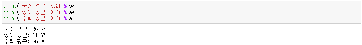 - 각 과목 평균 소수점 둘째자리까지 확인