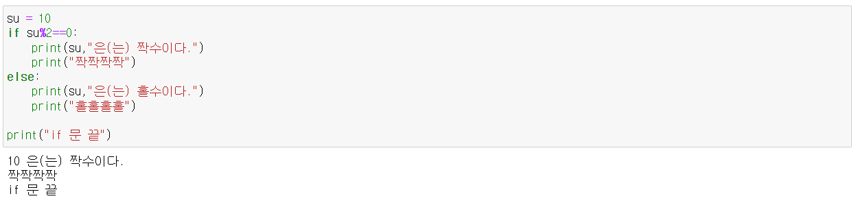 - True일 때 실행문은 무조건 써야 한다. 안쓰면 에러남.