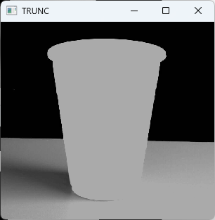 - cv2.THRESH_TRUNC: threshold보다 크면 value로 지정하고 작으면 기존의 값 그대로 사용한다.