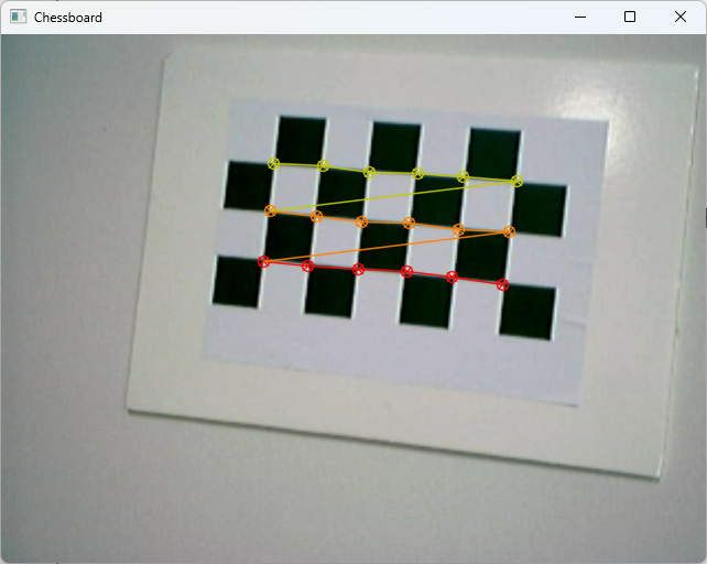 - cv2.drawChessboardCorners(image, patternSize, corners, patternWasFound)