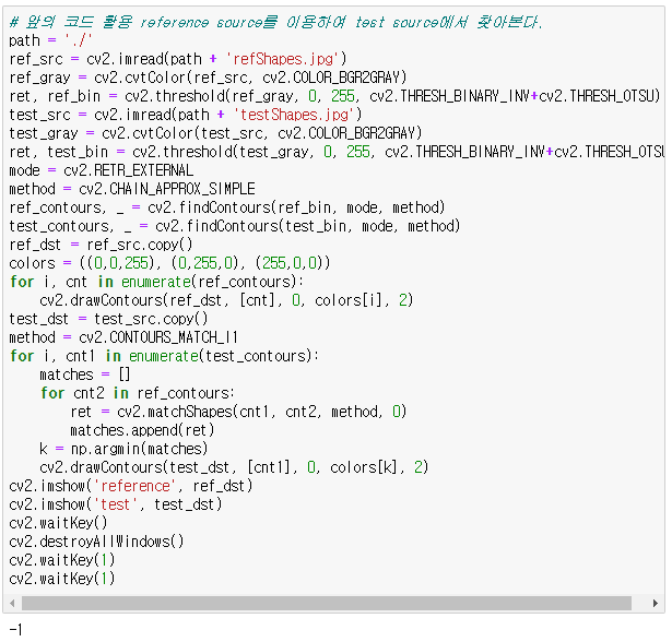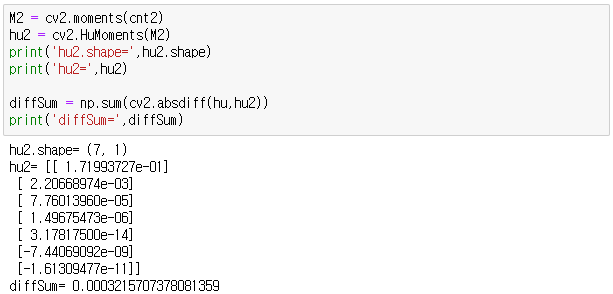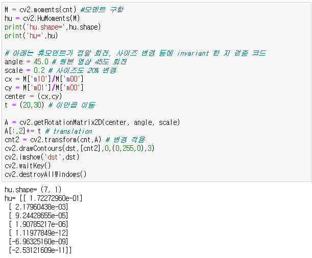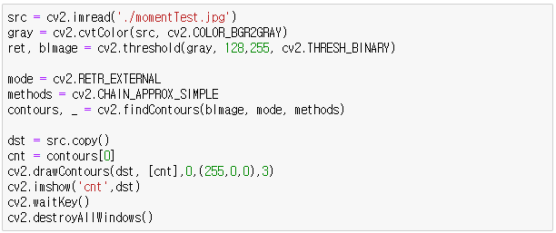 - 영상 분할 후 각 객체에 대한 모멘트 계산