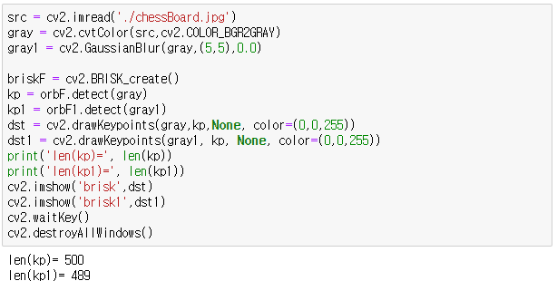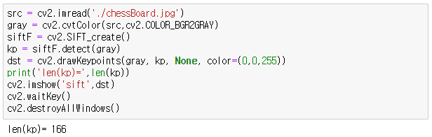 - 특징점에 대한 디스크립터로 특징점 검출 방법은 제공하지 않음