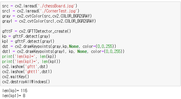 - goodFeaturesToTrack 함수를 내부적으로 사용하여 특징 검출
