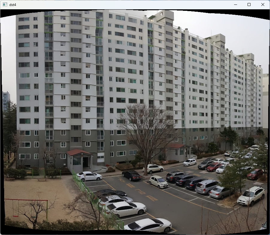 - 호모그래피 행렬을 기반으로 입력 영상을 변형하여 서로 이어붙이는 작업 수행