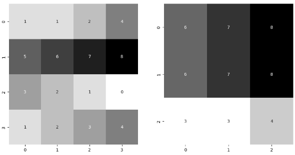 # 4x4 image, pool_size=(2, 2), strides=(2, 2), padding=‘valid’
