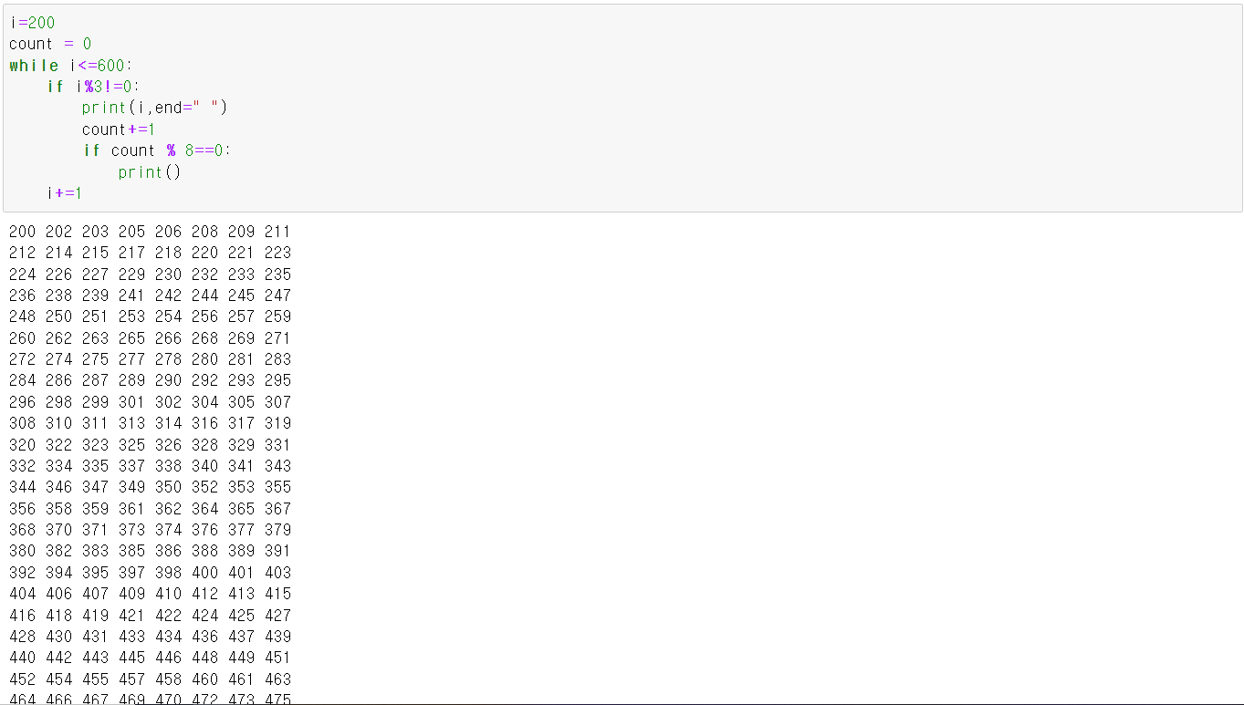 - while문 사용 3의 배수가 아닌 수 출력 200~600
