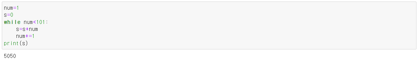 - 1부터 100까지의 합을 while문을 사용하여 구해보세요.