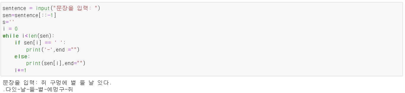 - while문 사용 입력 문장을 역순으로 출력하기