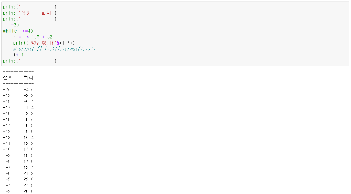 - while문 사용 섭씨/화씨 변환