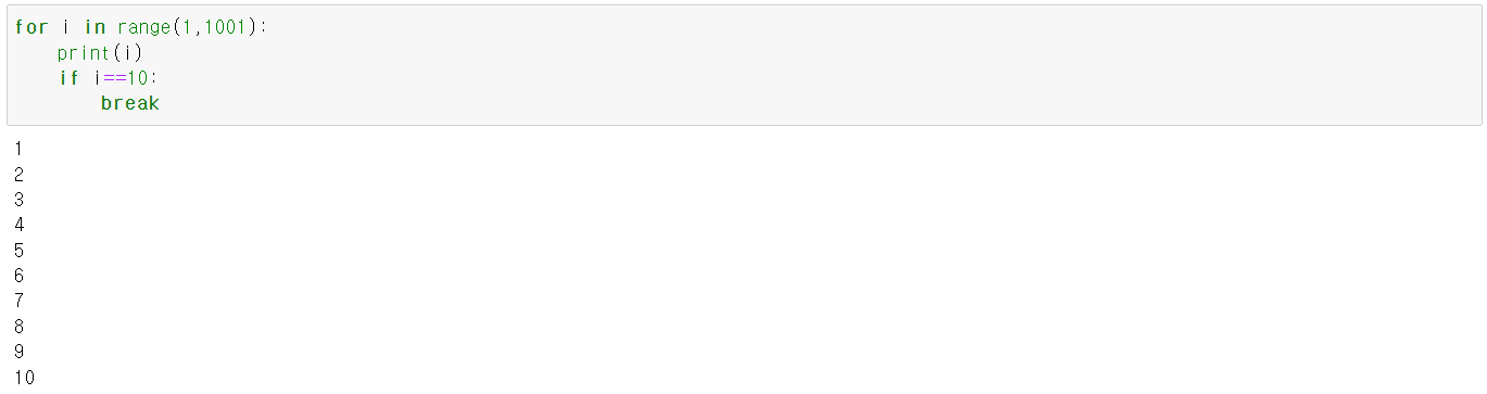 - break: 반복문을 빠져나가고 싶을 때 사용