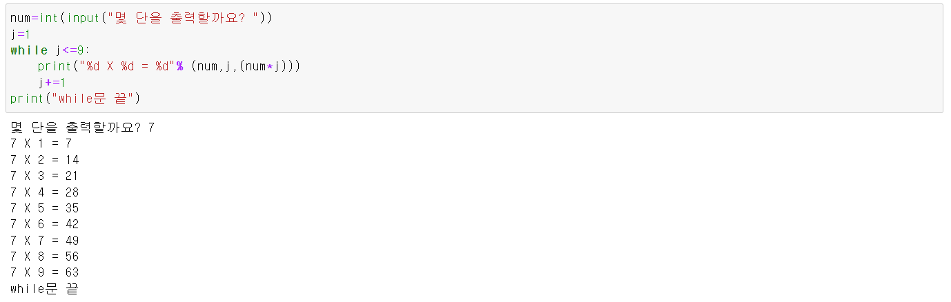 - while문을 사용한 구구단 구현