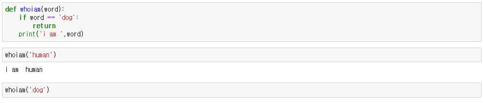 - 단 키워드가 dog일 때는 return으로 결과 생략