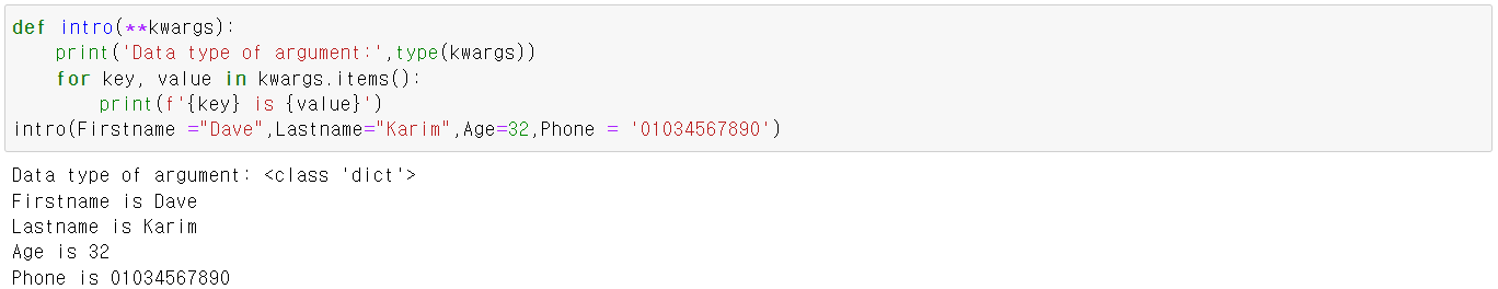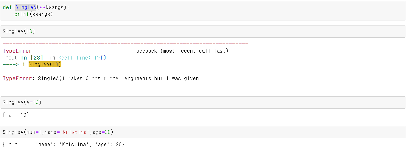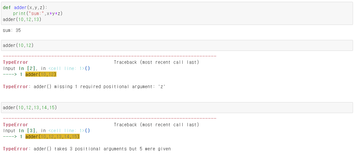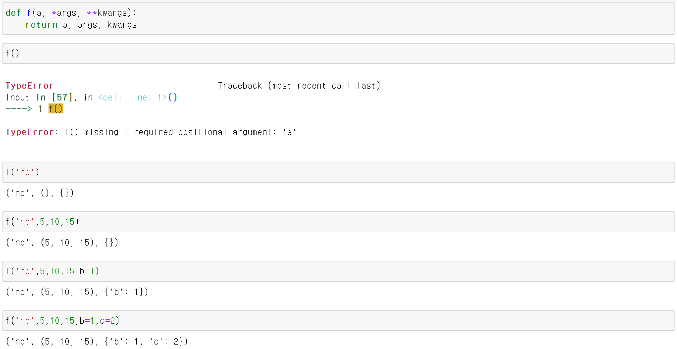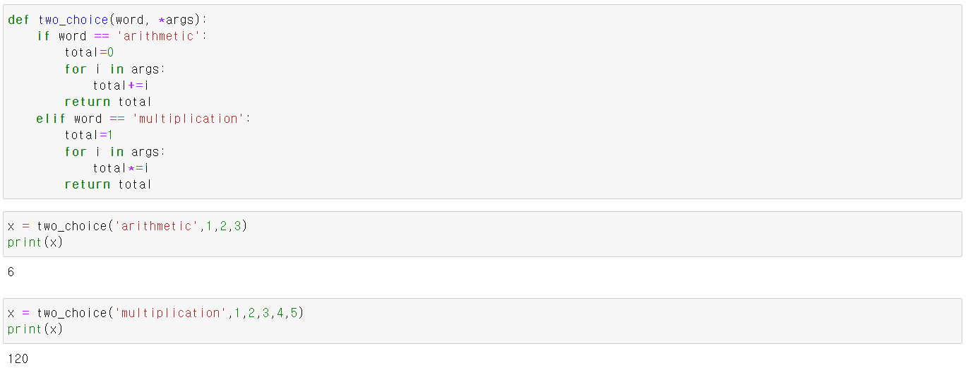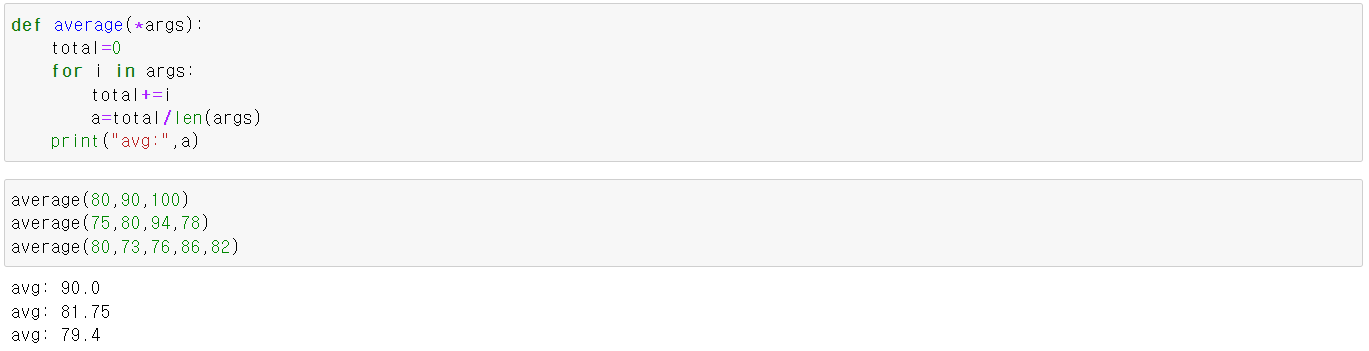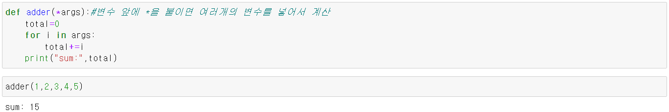 - 입력값이 몇 개가 될지 모를 때(Non Keyword Arguments)