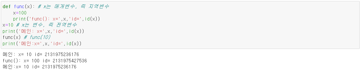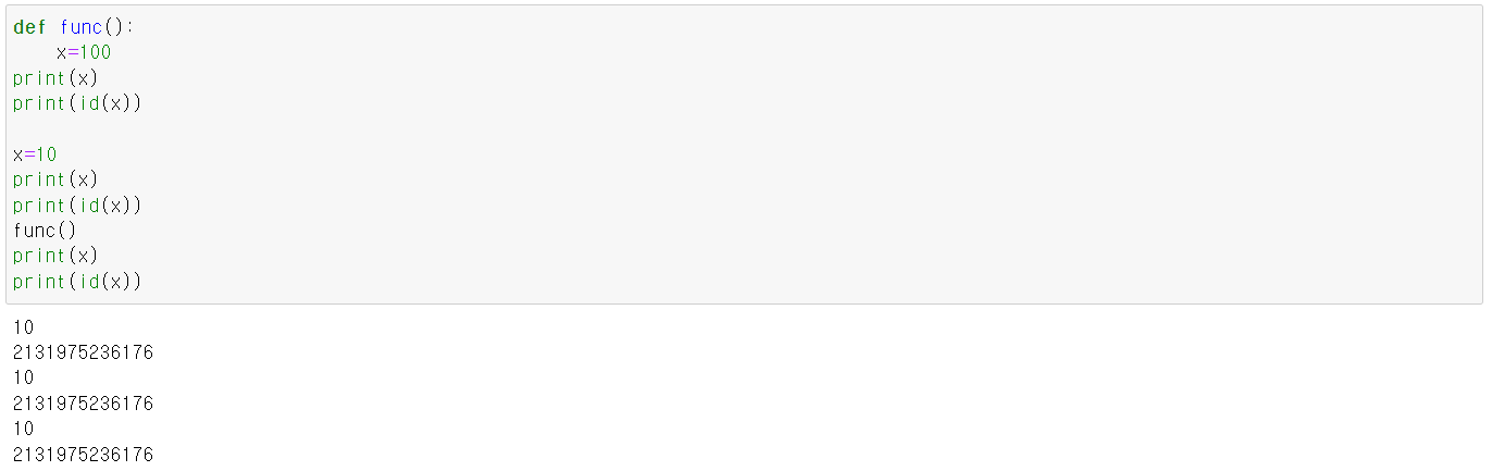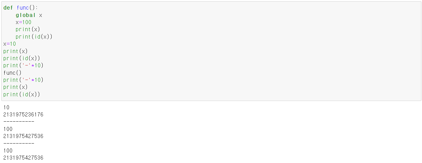 - 전역변수(Global Variable): 하위의 모든 함수에서 유효