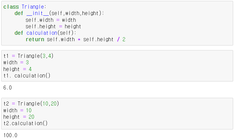 - 삼각형의 너비, 높이 값을 입력하면 면적을 구하는 클래스 작성