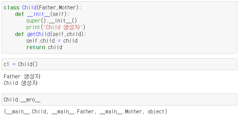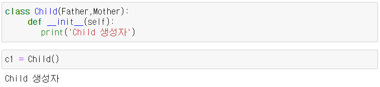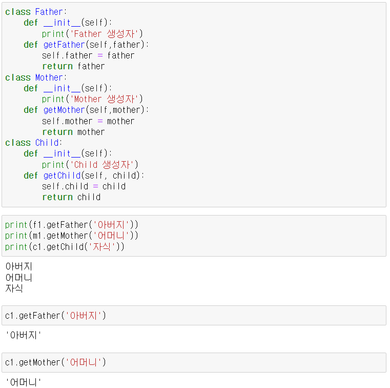 - Child 클래스에 Father, Mother 클래스를 상속받고 실행