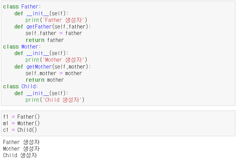 - Father은 getFather, Mother은 getMother, Child는 getChild의 메소드를 가집니다.