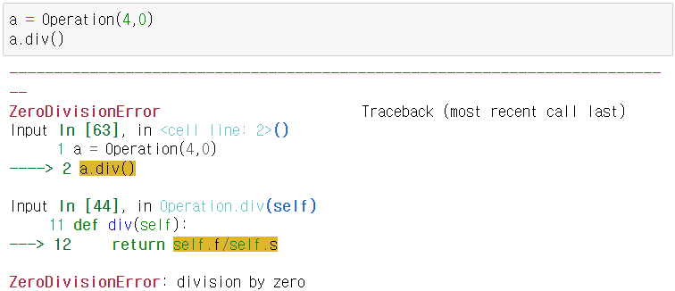 - 아래와 같이 Operation 클래스의 div 메소드는 0으로 나누었을 때 에러가 발생