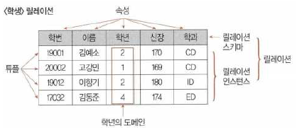 - 관계(Relationship): 개체와 개체 사이의 논리적인 연결
