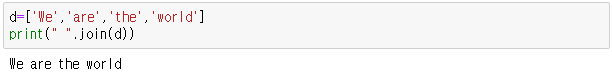 - ['We','are','the','world']를 we are the wolrd라는 문자열로 출력