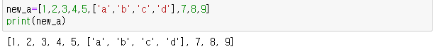 - 리스트를 생성할 때에는 [ ] 기호를 사용