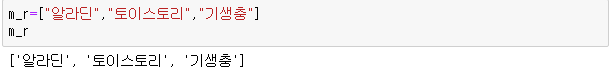 - 영화 제목을 m_r 이름의 리스트에 저장합니다.