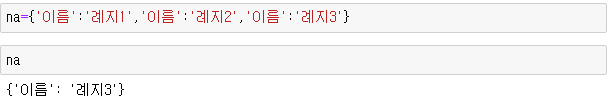 딕셔너리를 설정할 때는 { } 중괄호를 쓰지만, 데이터를 찾을 때는 [ ] 대괄호 쓰기.