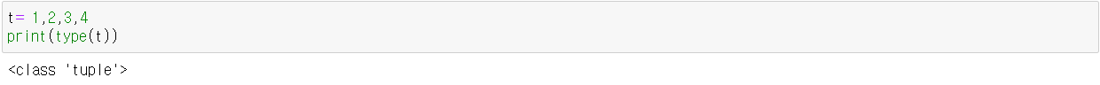 파이썬은 항상 소괄호가 씌여저 있어서, ( ) 소괄호는 생략 가능하다. 튜플과 int형을 구분하기 위해서 꼭! 콤마를 붙여야 한다.