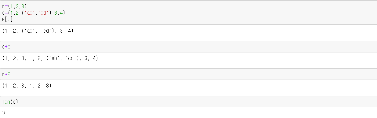덧셈이나 곱셈은 튜플을 확장시켜준다.튜플을 사용해 하나씩 지정할 수 있다.