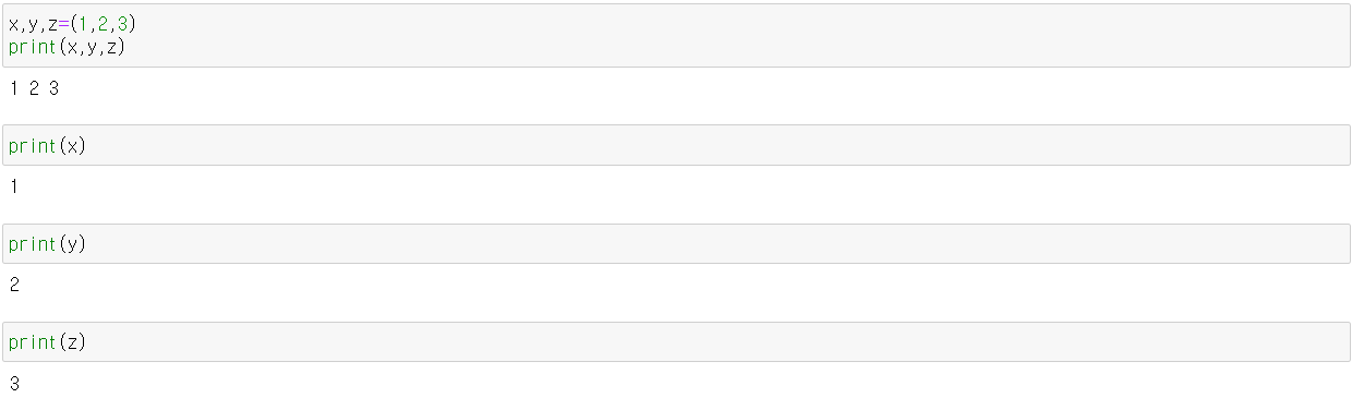 튜플은 ( ) 괄호를 생략해도 튜플.