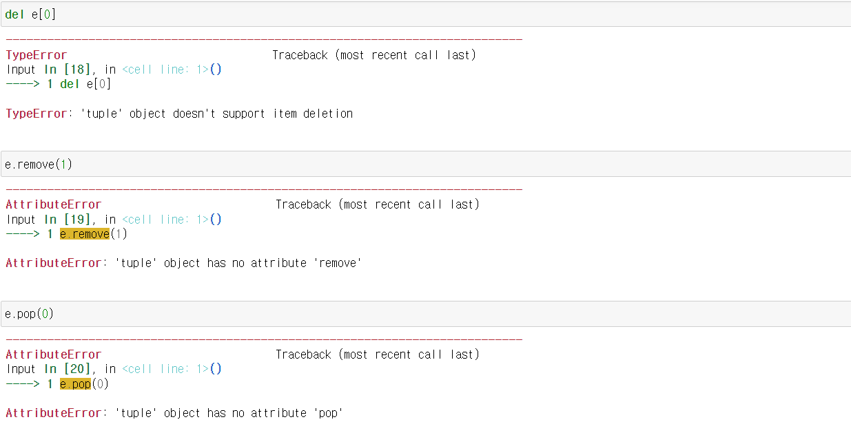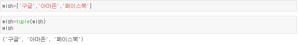 리스트와 달리 튜플은 생성 후 값의 변경을 할 수 없음