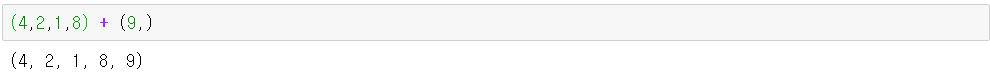 (4,2,1,8) 튜플을 (4,2,1,8,9)로 만듭니다.